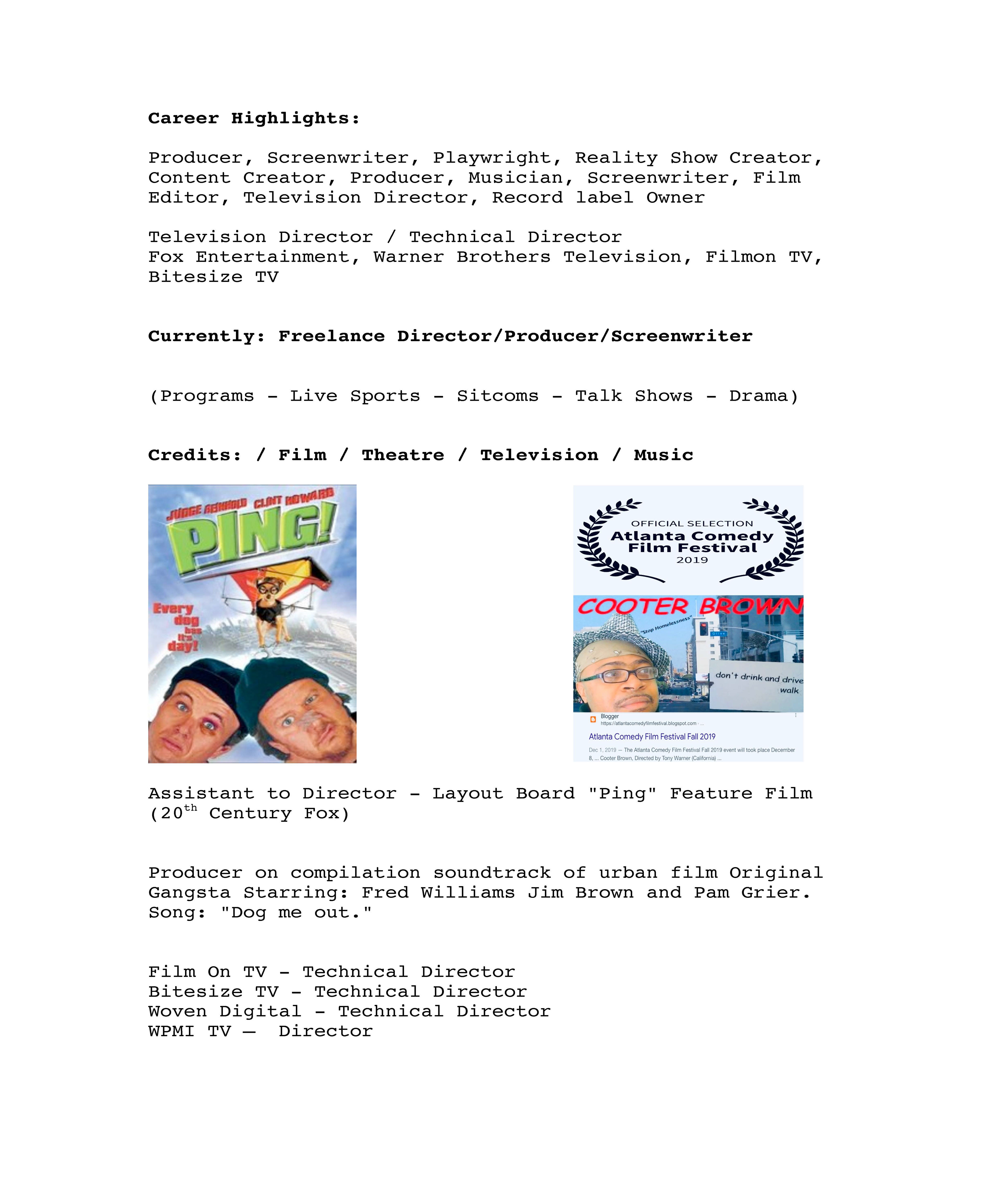 Director / Show Creator / Screenwriter / Producer / Showrunner Music Producer